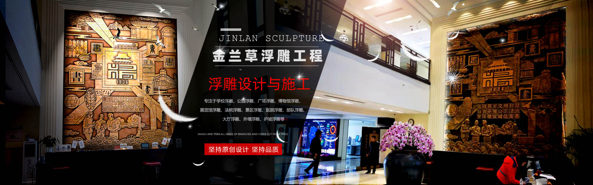 查看更多產(chǎn)品 + 電話:15978409299金蘭草浮雕是一家專業(yè)的玻璃鋼浮雕、鍛銅浮雕、鑄銅浮雕、不銹鋼浮雕、砂巖浮雕、石材浮雕、鐵藝浮雕、水泥浮雕等設(shè)計與施工的雕塑藝術(shù)企業(yè),專注于學(xué)校浮雕、公園浮雕、廣場浮雕、博物館浮雕、展覽館浮雕、法院浮雕、景區(qū)浮雕、醫(yī)院浮雕、部隊浮雕、大廳浮雕、外墻浮雕、護(hù)坡浮雕等,服務(wù)社會,為廣大業(yè)主朋友們設(shè)計制作出精品浮雕。企業(yè)自成立以來,一直致力于高水準(zhǔn)浮雕的設(shè)計與施工,真心的服務(wù),力求讓每一位客戶滿意。多年來,公司服務(wù)全國,業(yè)績遍布各地,得到眾多客戶的肯定。 公司秉承對客戶負(fù)責(zé)的原則,堅持原創(chuàng)設(shè)計,堅持品質(zhì),堅持每一件浮雕作品不僅僅要打動客戶,更要打動自己。讓客戶放心,對自己負(fù)責(zé),是公司始終堅持的方針。 展望未來,金蘭浮雕將以更加開放的胸懷迎接發(fā)展中的挑戰(zhàn)和機遇,“開拓創(chuàng)新,合作共贏,追求卓越”,與社會各界朋友一起攜手共創(chuàng)輝煌! 公司自成立以來,一直致力于高水準(zhǔn)浮雕、雕塑、景觀設(shè)計與施工,真心的服務(wù),力求讓每一位客戶滿意。多年來,公司服務(wù)全國,業(yè)績遍布各地,得到眾多客戶的肯定。 公司秉承對客戶負(fù)責(zé)的原則,堅持原創(chuàng)設(shè)計,堅持品質(zhì),堅持每一件雕塑作品不僅僅要打動客戶,更要打動自己。讓客戶放心,對自己負(fù)責(zé),是公司始終堅持的方針。 展望未來,金蘭園林景觀將以更加開放的 ...